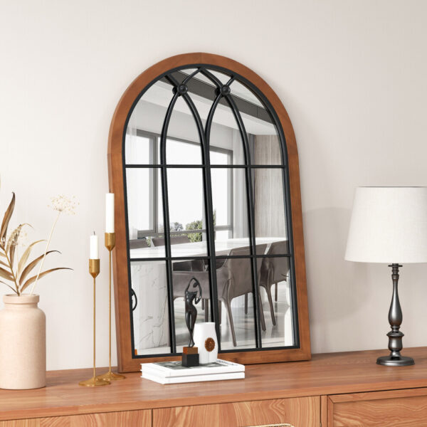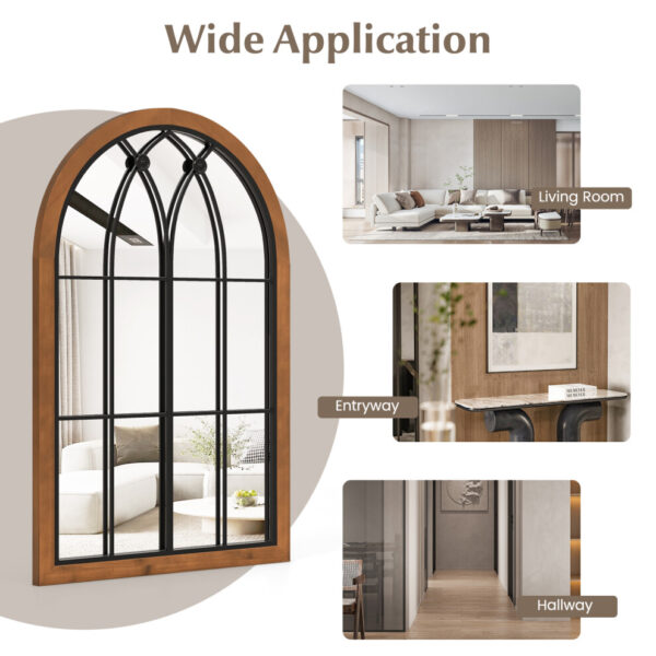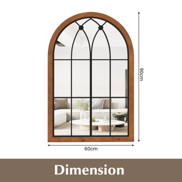 Elegant Arch Frame Mirror: The arched top and wood frame bring classic and elegant feel to this decorative wall mirror. And the window panel design further complements the beauty of the wall mirror. This hanging wall mirror makes for a wonderful accent piece that seamlessly coordinates with a variety of decor styles and themes.More Installation Ways: This wall mirror ships fully assembled in 1 piece and is easy to install in a short time. Thanks to the wall-mounted design and comes with 2 metal hooks, you can mount this decorative mirror to the wall vertically with ease. Besides, it can be directly placed on the table, leaning against the wall.Premium Materials: This well-made wall mirror adopts multi-layer structure for reliable and durable use. It is composed of metal frame, premium glass, plating silver, and MDF back board. The wall mirror is carefully framed in thick and solid fir wood, which is stable, durable and not easy to crack.More Stable and Safe: The explosion-proof glass mirror ensures the safety of you and your family members. The fully sealed wood frame and inside metal decoration parts make the mirror shockproof and more stable and have a longer lifespan. Plus, smooth edge design ensures safe use at home.Wide Application: The wall mirror is the perfect wall decor whether you hang it as 1 accent or in multiples for an elegant wall display. The reflective design adds a touch of brilliance to any wall in your home. Whether hung in the entryway, living room, hallway or any other room of your home, this decorative wall mirror is sure to please you and your guests.60 x 90cm Wall Mounted Mirror Arched Window Frame Mirror Decor W/ Back Board DescriptionFeature:Crafted of solid wood, quality metal and glass materials for long lasting useArch top and window panel design bring elegance and sophisticationSolid wood frame and sturdy metal parts ensure stability and durabilityExplosion-proof glass mirror is much safer for home useCan be hung vertically using the metal hooks on the backReflective surface makes your room appear more openEspecially fits well with rustic or farmhouse home styleSuitable for bathroom, living room, corridor, hallway, etc.Specifications:Colour: NaturalMaterial: Fir Wood, Metal, GlassOverall Dimension: 60 x 90 x 2.5 cm (L x W x H)Item weight: 6.5kgPackage Includes:1 x Decorative Wall MirrorFeaturesColour:Not SpecifiedType:Wall MirrorShape:ArchedMounting:Wall MountedFeatures:Infinity MirrorMaterial:WoodFrame:With FrameProduct TagsWindow, 90cm