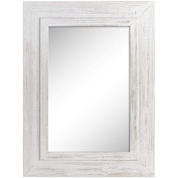 DECORATIVE ACCENT MIRROR – A statement piece ready to open up a room and create an illusion of space. This chic, whitewashed wood frame wall mirror will add timeless appeal and style to your home.RUSTIC FINISH – Lend a vintage-inspired farmhouse look to your decor with this large, distressed, wooden framed mirror. A whitewashed rectangular barnwood frame complements the modern, shabby-chic country theme.READY TO HANG – This large mirror comes ready to hang vertically or horizontally with pre-installed hooks. Eye-catching mirror wall decor that is perfect to mount in a living room, bedroom, entryway or used as a bathroom vanity. This sleek wooden mirror is a must-have for your home.DIMENSIONS -Frame: 61 x 4.5 x 81.5cm. Mirror: 58 x 37.5cm100% REFUND/REPLACEMENT GUARANTEE: Full refund or replacement is FULLY GUARANTEED for mirror(s) damaged on arrival, no return is needed, simply send us some pictures through Amazon Message to show: the damaged mirror(s); the front and back views of the outer box(es); the label information on the outer box(es).Barnyard Designs 61cm x 81.5cm Decorative Whitewashed Wood Frame Wall Mirror, Large Rustic Farmhouse Mirror Decor, Vertical or Horizontal Hanging, For DescriptionBarnyard Designs 61cm x 81.5cm Decorative Whitewashed Wood Frame Wall Mirror, Large Rustic Farmhouse Mirror Decor, Vertical or Horizontal Hanging, For Bathroom Vanity, Living Room or Bedroom, WhiteBrand: Barnyard DesignsMaterial: WoodStyle: RusticShape: RectangularMounting type: Floor Standing, Wall MountBrand: Barnyard DesignsColour: Distressed GreyProduct Dimensions: 60.91 x 4.29 x 81.2 cm; 6.42 KilogramsMaterial: WoodItem Weight: 6.42 kgProduct TagsLarge, Wood, Hanging, Decorative, Wall Mirror, Rustic