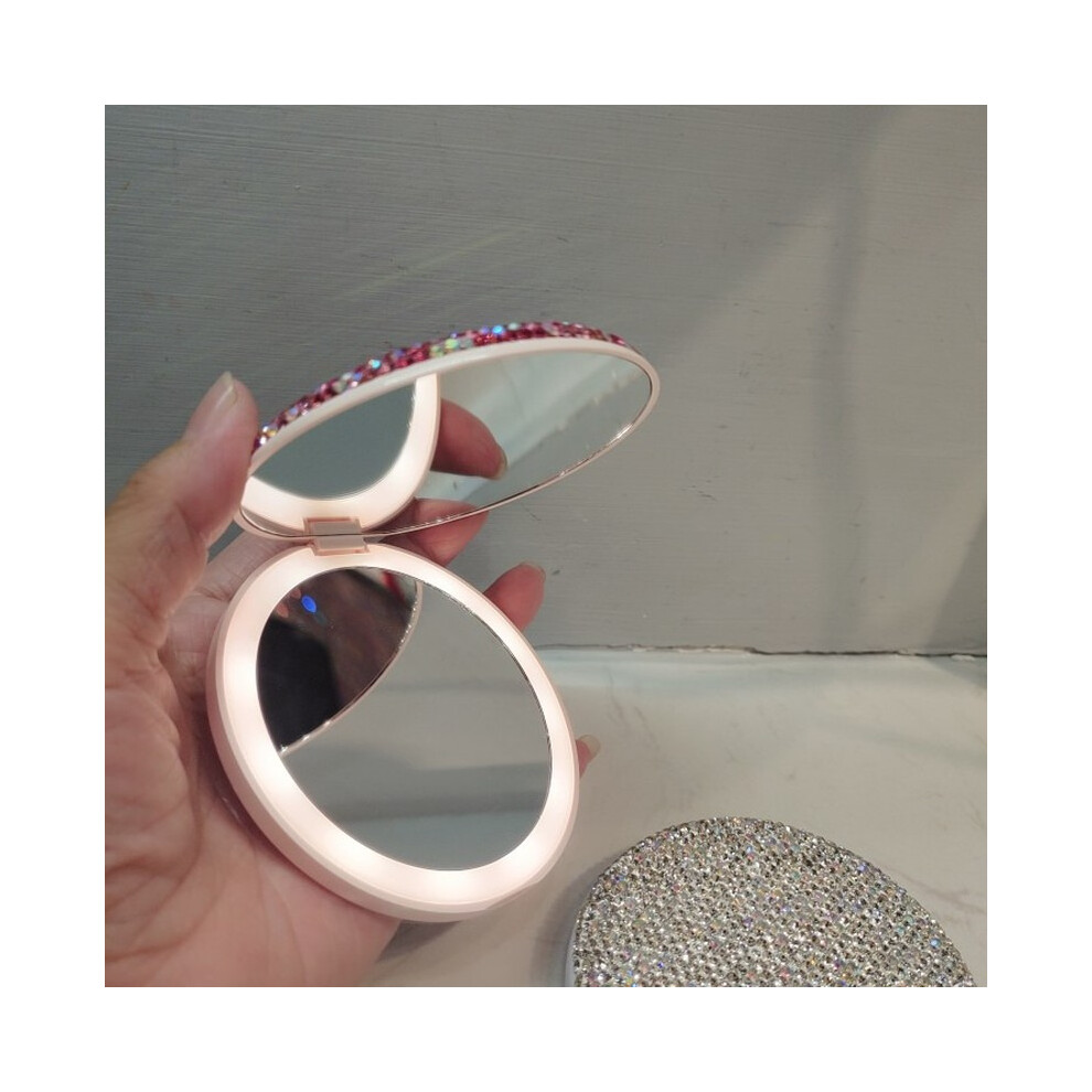 Bling Small Mirror Portable Mini Round LED Makeup Mirror With Rhinestone Decoration Single Side Magnifying Mirror Girl With Lamp DescriptionThis product may be available in more colours, sizes or styles. Please contact us to check the availability of your choice. We would be happy to assist you if you want to know more about the product specifications or material details.FeaturesColour:WhiteType:Free-Standing MirrorShape:SquareMounting:Free StandingFeatures:LED LightsMaterial:PlasticFrame:Without Frame