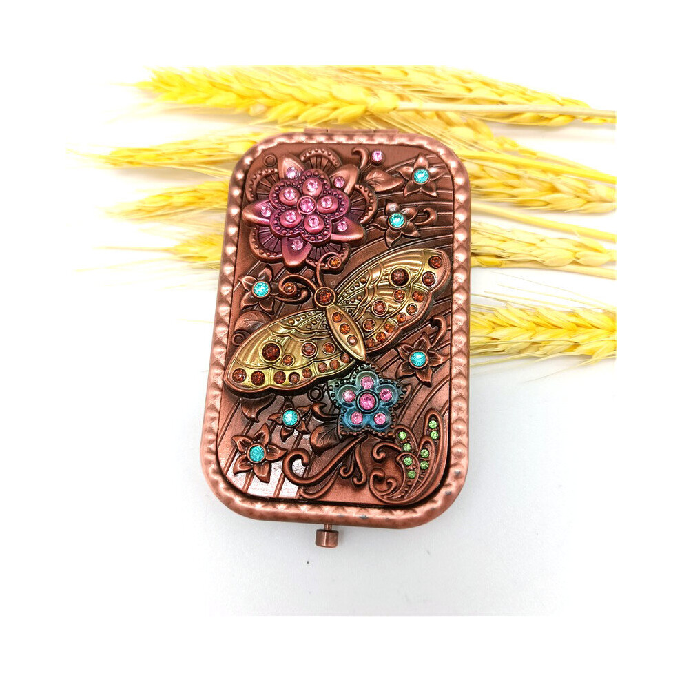 Butterfly Double Side Portable Travel Mirror With Dust Bag Birthday Wedding DescriptionThis product may be available in more colours, sizes or styles. Please contact us to check the availability of your choice. We would be happy to assist you if you want to know more about the product specifications or material details.FeaturesColour:BrownType:Free-Standing MirrorShape:SquareMounting:Free StandingFeatures:LED LightsMaterial:PlasticFrame:Without Frame