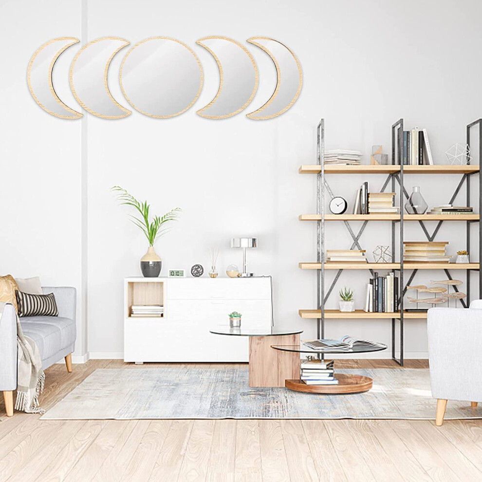 Creative Acrylic Moon Mirror Wall Stickers Set Bohemian Decorative Moon Phase Mirror Set for Living Room Bedroom Restaurant DescriptionThis product may be available in more colours, sizes or styles. Please contact us to check the availability of your choice. We would be happy to assist you if you want to know more about the product specifications or material details.FeaturesColour:GoldType:Free-Standing MirrorShape:SquareMounting:Free StandingFeatures:LED LightsMaterial:PlasticFrame:Without FrameProduct TagsDecorative