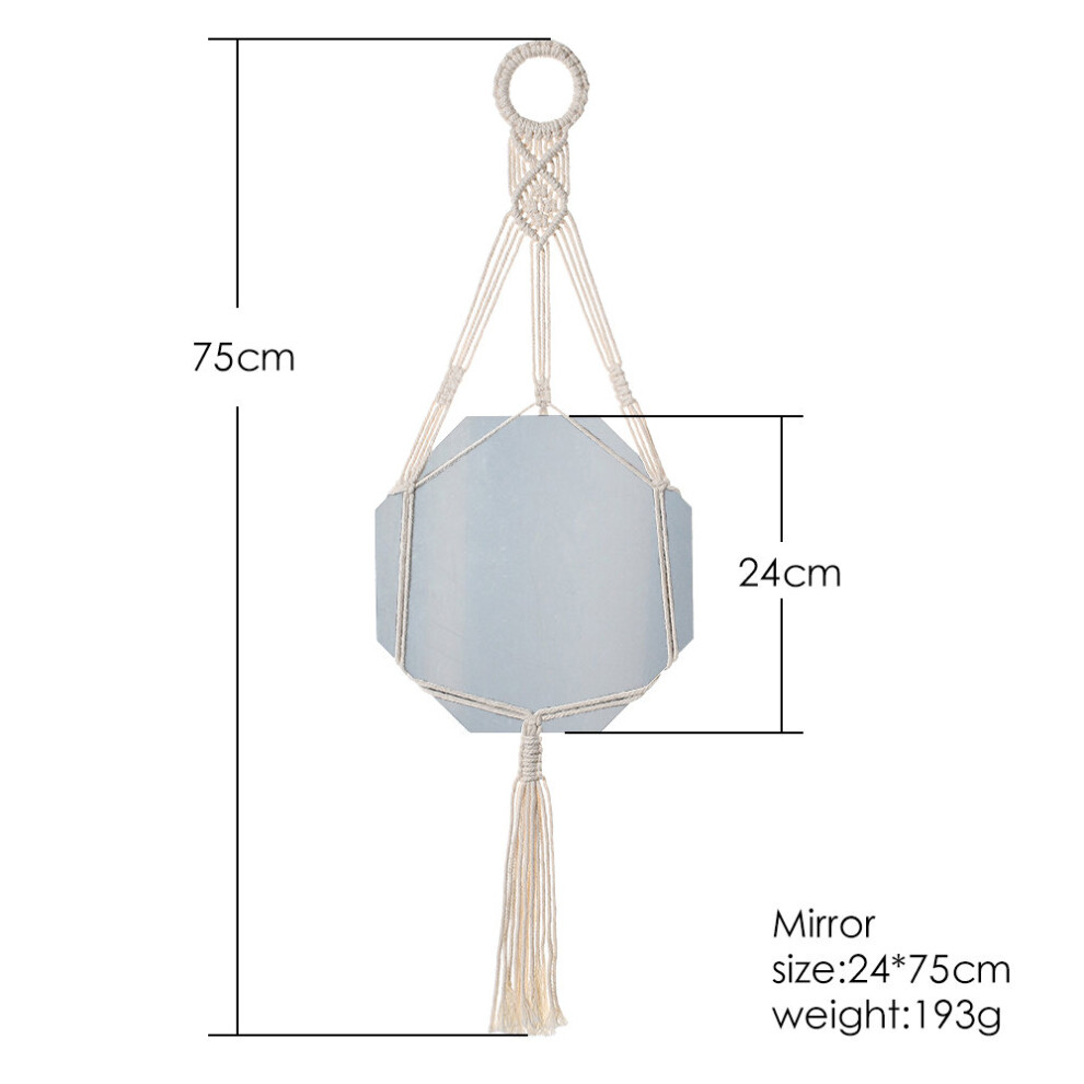 Geometric Decorative Mirror Macrame Wall Hanging Mirror Boho Home Decor Living Room Decoration Apartment Bedroom Dorm Gift DescriptionThis product may be available in more colours, sizes or styles. Please contact us to check the availability of your choice. We would be happy to assist you if you want to know more about the product specifications or material details.FeaturesColour:BrownType:Free-Standing MirrorShape:SquareMounting:Free StandingFeatures:LED LightsMaterial:PlasticFrame:Without FrameProduct TagsWall Hanging, Hanging, Hanging Mirror, Decorative