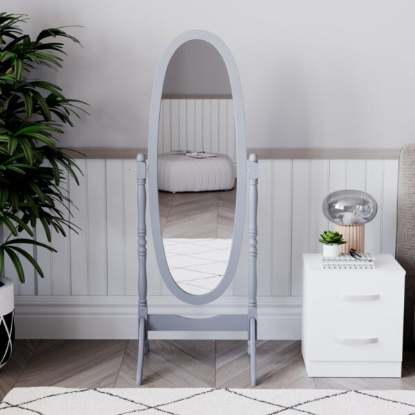 (Grey) Nishano Oval Mirror Freestanding Tall Swivel Frame DescriptionNishano Oval Mirror Freestanding Tall Swivel FrameFeaturesColour:GreyType:Free-Standing MirrorShape:RoundMounting:Free StandingFeatures:NoneMaterial:WoodFrame:With FrameProduct TagsOval, Swivel