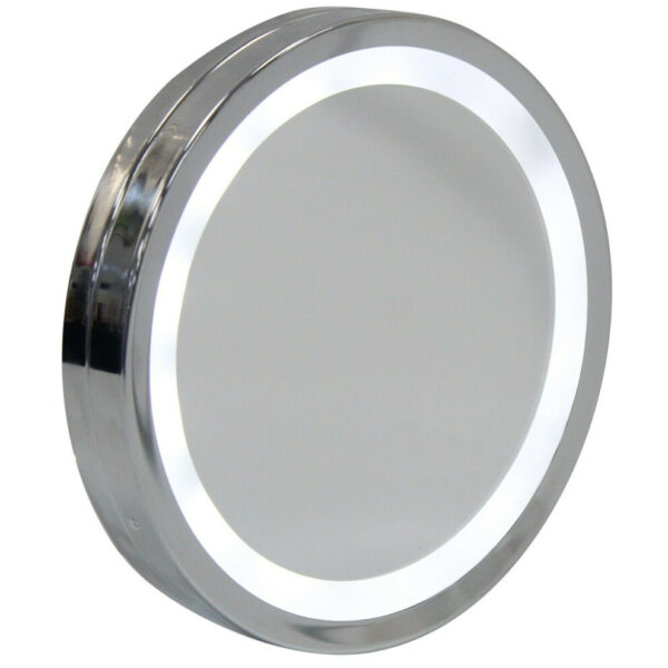 LED Cosmetic MirrorLED Surround LightDiameter: 15 cm (inc LED light)3x Magnified ReflectionChrome FinishLED Cosmetic Travel Mirror Shaving Mirror Make-up Chrome Finish 3 x Magnify DescriptionLED Cosmetic Mirror Shaving Make-up Chrome Finish IlluminatedWith this handy, robust mirror you will always have everything in perfect view.The Magnified Chrome Finish Mirror provides options to display a clear reflection whenever you need it. The mirror is comes equipped with a LED surround light, providing additional illumination for added convenience.3 x MagnifyThis mirror has suction cups at the back, so you can put onto your existing mirror or windowFeaturesColour:ClearShape:RoundFeatures:LED LightsProduct TagsChrome, Shaving