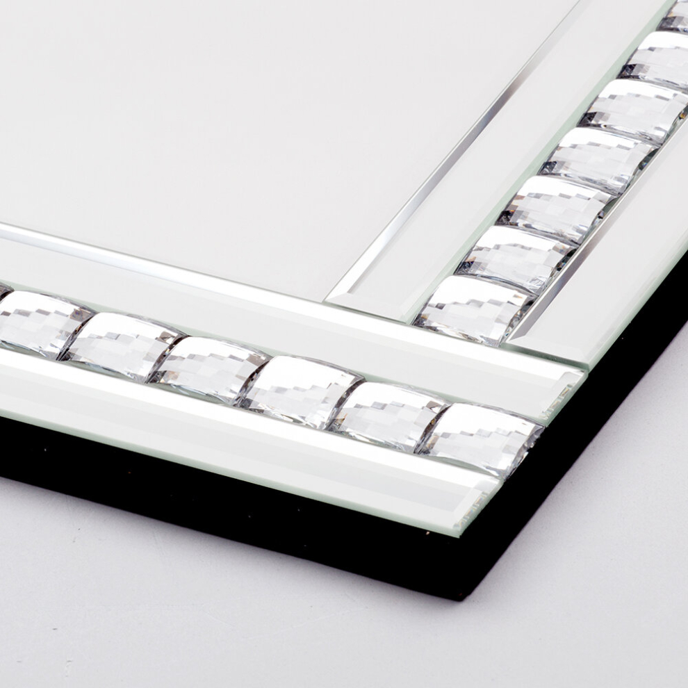 Triple Bar Mirror Frame – SilverStyle: Triple BarMaterial: Metal, GlassShape: SquareIdeal for adding the finishes touches to any roomLitecraft Square Triple Bar Crystal Effect Mirror Frame – Silver DescriptionProduct Type: MirrorStyle: Triple BarColour: SilverMaterial: Metal, GlassShape: SquareHeight: 60 cm approxWidth: 60 cm approx.Length: 1 cm approx.Please note: Images are for illustration purposes only.Your order will be delivered by Royal Mail, unless the item(s) exceeds the size and weight restrictions. Larger, heavier items will be delivered by DPD courier.FeaturesColour:SilverType:Wall MirrorShape:SquareMounting:Wall MountedFeatures:NoneMaterial:GlassFrame:With Frame