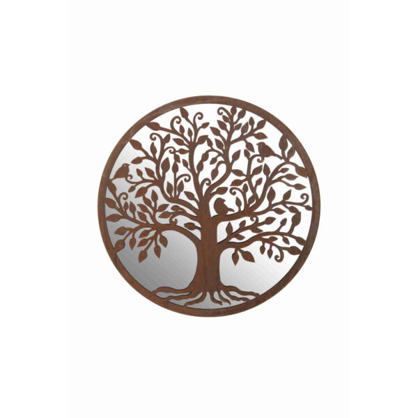 Mirrored Glass Metal Tree Of LifeMetal Wall ArtPerfect For Your Home Or GardenKeyhole hanger located on reverse Will Weather if Used OutsideMeasurements: 60 cm x 60 cmMirrored Bird Tree Of Life Metal Round Wall Art Garden Plaque DescriptionThis stunning bird tree of life wall art sculpture is a must-have for any home decor enthusiast.Crafted from high-quality metal and glass, this 60 x 60 cms plaque is the perfect addition to your wall hangings collection.The intricate design of the tree and its birds will add a touch of elegance to any room, creating a unique focal point that is sure to impress.The materials used in this piece ensure its durability, making it ideal for both indoor and outdoor use.With its intricate design and beautiful aesthetic, this wall art sculpture is perfect for any garden or living room.Its size also makes it a versatile piece that can be easily incorporated into any home.FeaturesColour:BrownType:Wall MirrorShape:RoundMounting:Wall MountedFeatures:NoneMaterial:MetalFrame:With FrameProduct TagsMirrored