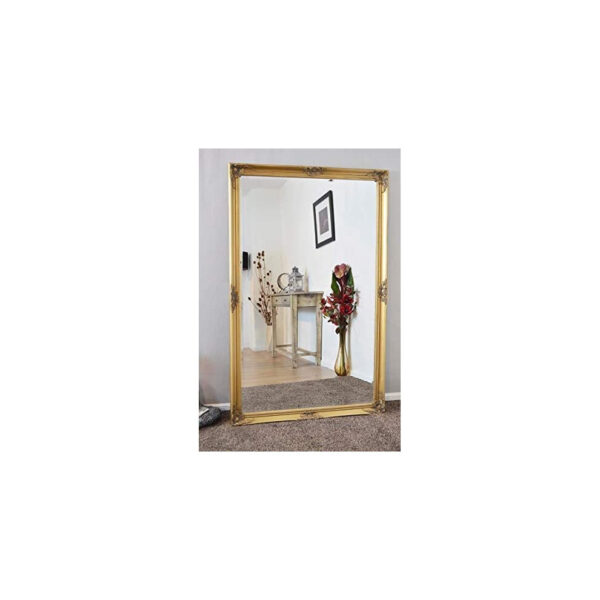 MirrorOutlet X Large Gold Antique Bevelled Dressing Wall Mirror 5Ft6 X 3Ft6 (168cm X 107cm) DescriptionStunning Antique full length leaner floor standing good wall mirror which boasts detailing on all corners and sides adding a final touch of elegance to any room This particular mirror has a bevelled glass size of 5ft x 3ft, 152cm x 91cm and an overall size of 5ft6 x 3ft6, 168cm x 107cm. Antique Style Gold Rectangle Mirror Can be hung Landscape or Portrait Create a Classical Statement for your Lounge, Dining room, Bedroom or Kitchen Explore MirrorOutlet Full Range of Venetian and Classical Full Length Leaner and Wall mounted mirrorsProduct TagsAntique, Large, Wall Mirror