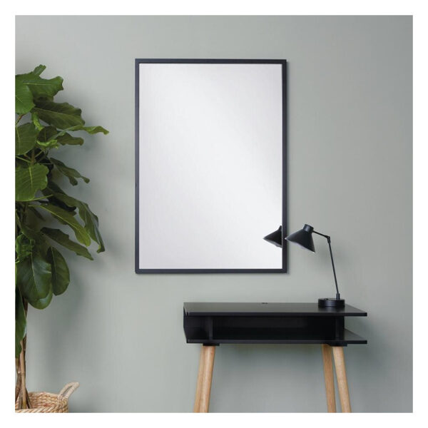 Magnifying side with FALSE x magnification.Rectangular.Wood frame.Glass mirror.Wall mounted mirror.RefurbishedHabitat Dark Birch 70 x 100cm/28 x 39in Rectangular Wall Mirror – Black DescriptionThe Italian-made large dark birch black 70 x 100cm rectangular wall mirror is a classic design with a deep, square profile.The rectangular mirror can be hung horizontally or vertically above a fireplace or in a hallway.Size H104, W74, D4.5cm.Magnifying side with FALSE x magnification.Rectangular.Wood frame.Glass mirror.Wall mounted mirror.Can be hung horizontally or vertically.5.6kg.Fixings are not included.FeaturesColour:BlackType:Wall MirrorShape:SquareMounting:Free StandingMaterial:WoodFrame:With FrameProduct TagsWall Mirror