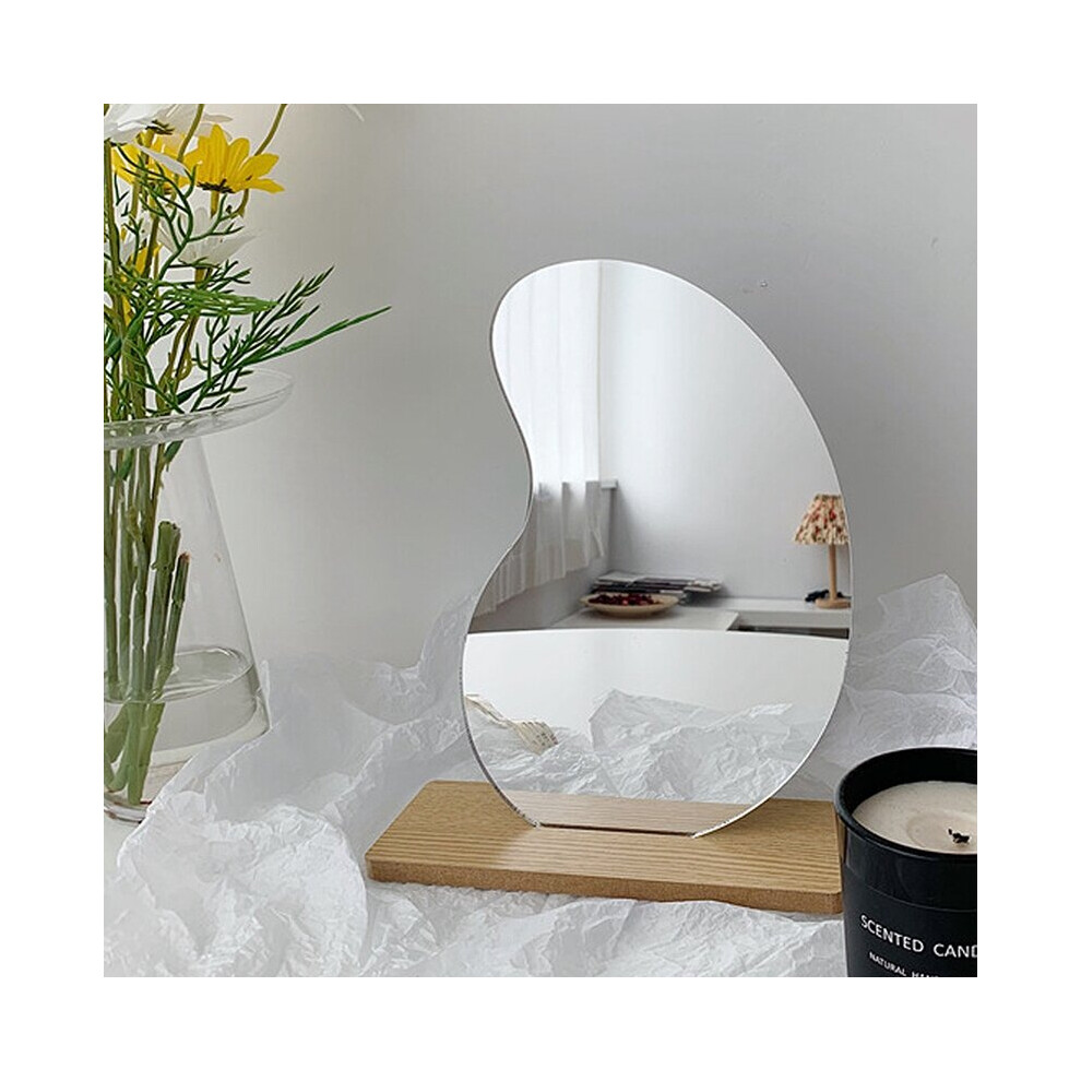 Style Decorative Mirror Ins Makeup Mirror with Wooden Base Home Decor Cosmetic De Maquillaje Irregular Mirror for Bedroom