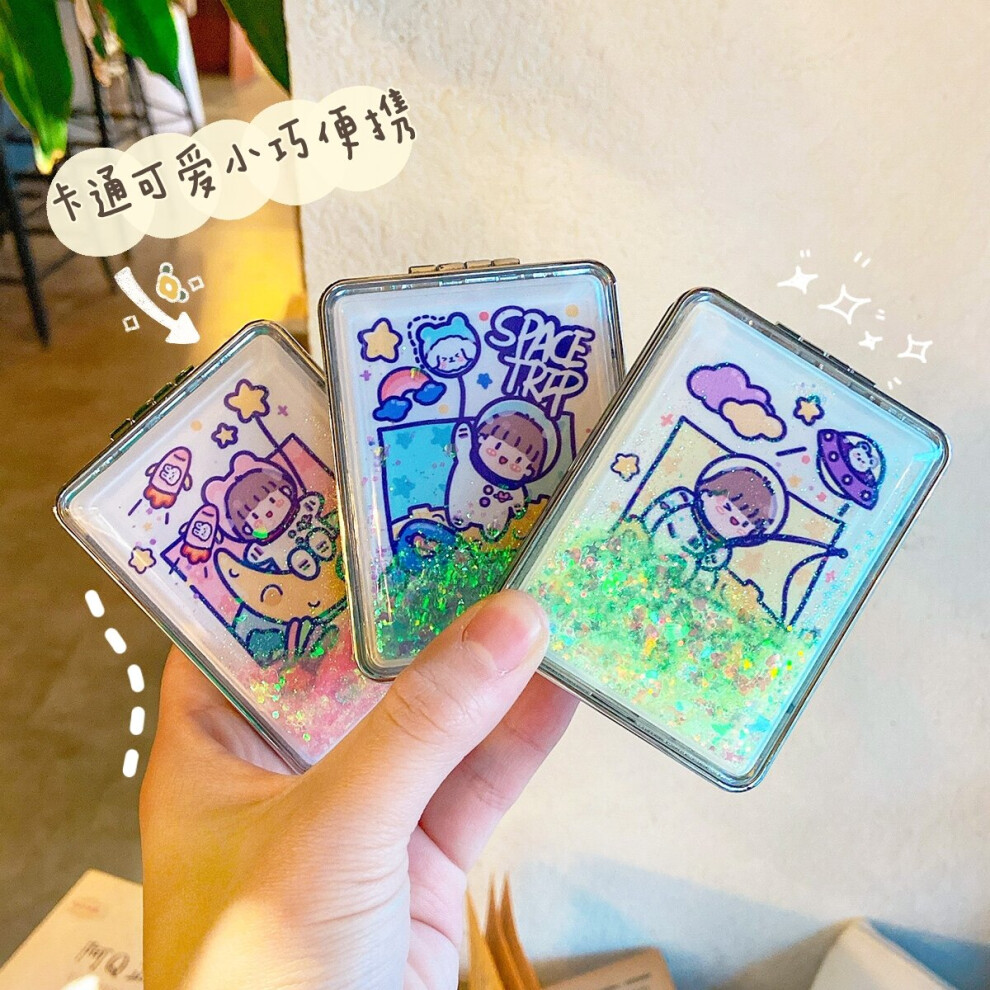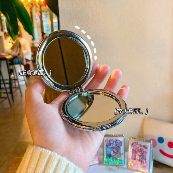 Trending Creative Quicksand Small Mirror Womens Portable Folding Flip Mini Small Sized Double-Sided Makeup Mirror