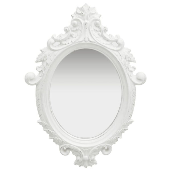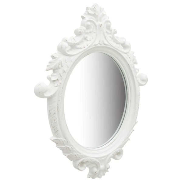 Wall Mirror Castle Style 56×76 cm White DescriptionAnother great product chosen for you.This beautifully designed wall mirror with an ornate frame creates a classic atmosphere in your bathroom, dressing room or bathroom. The antique-look mirror features a sturdy PU frame that is meticulously crafted in a decorative castle-style pattern. Additionally, the flat edge gives this mirror a unique look. The mirror is ready to be wall-mounted thanks to the already installed hook on the backboard.We select our products for Quality and Affordability.Outstanding value.Chosen specifically for our range due to its quality.Colour: WhiteMaterial: Polyurethane and glassDimensions: 56 x 76 cm (L x W)Mirror shape: OvalWith mounting hookQuick and easy to order.Direct from our warehouse.UPC / EAN: 8720286009741FeaturesColour:WhiteType:Wall MirrorShape:OvalMaterial:GlassProduct TagsWall Mirror
