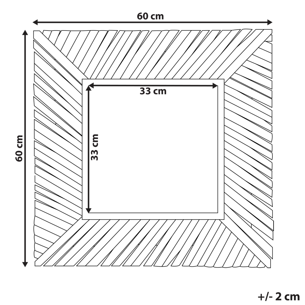 With Hooks on the Back for Hanging on the WallBlends Well with Any DecorSturdy Frame ConstructionPrecise FinishNatural MaterialWooden Wall Mirror 60 x 60 cm Light KANAB DescriptionDecorative